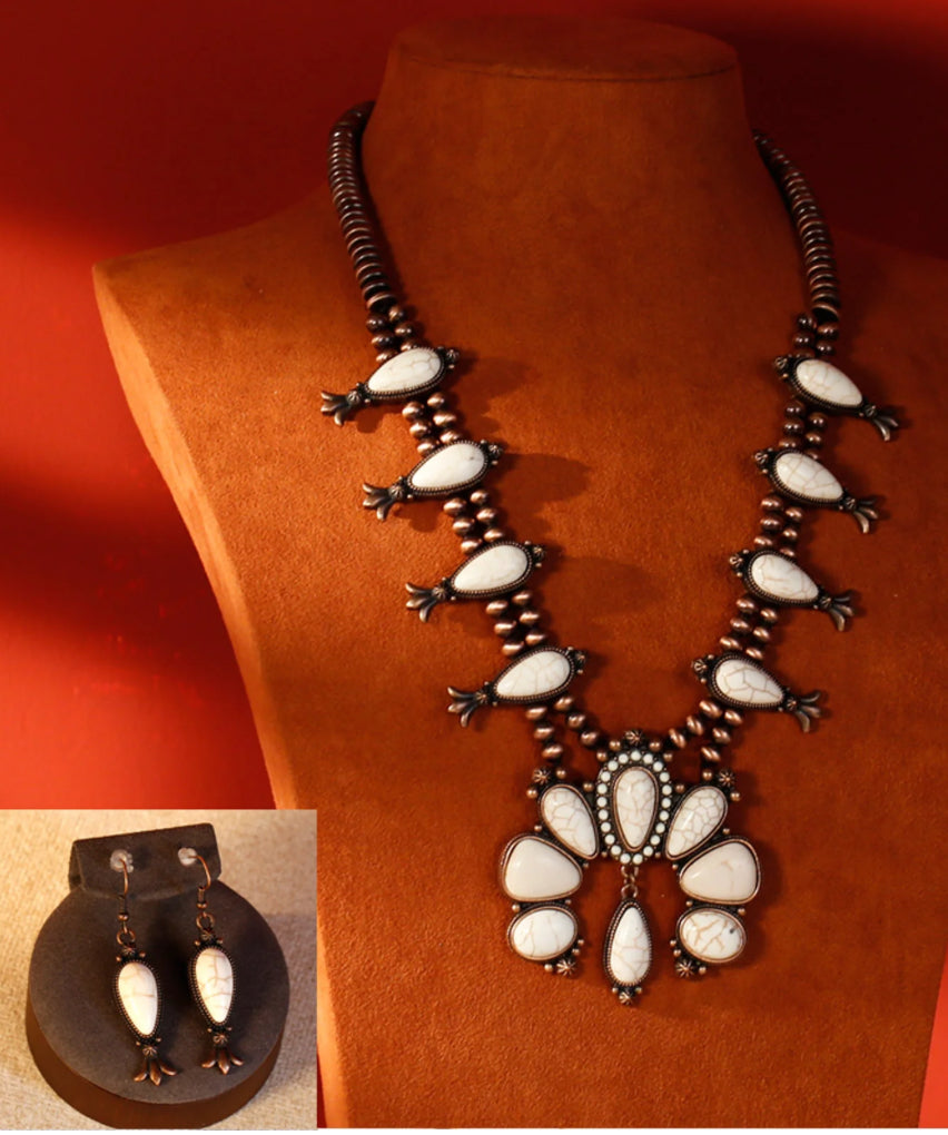 Wrangler Rustic Couture Bohemian Necklace and Earrings set White