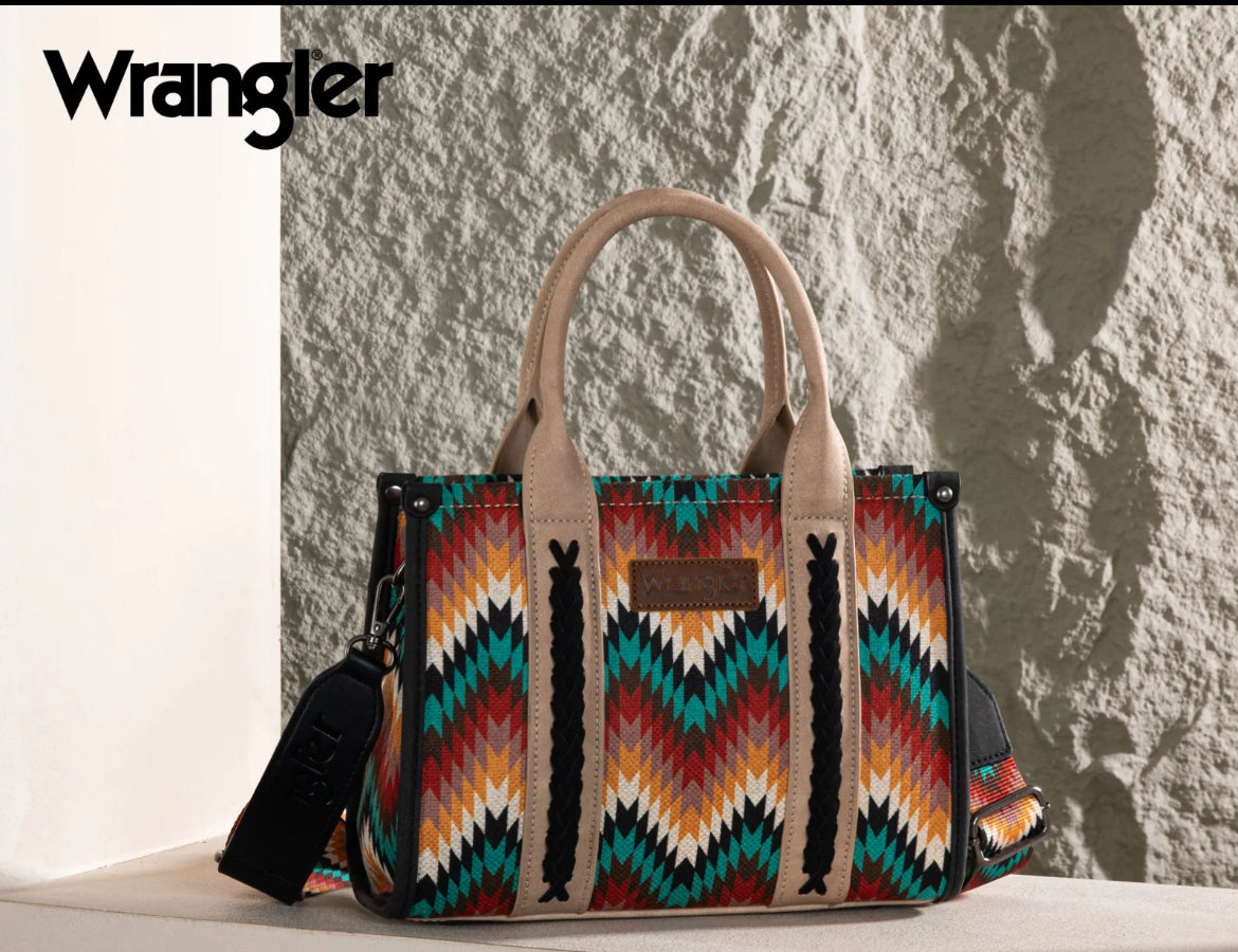 Wrangler Southwestern Pattern Dual Sided Print Crossbody- Aztec Black