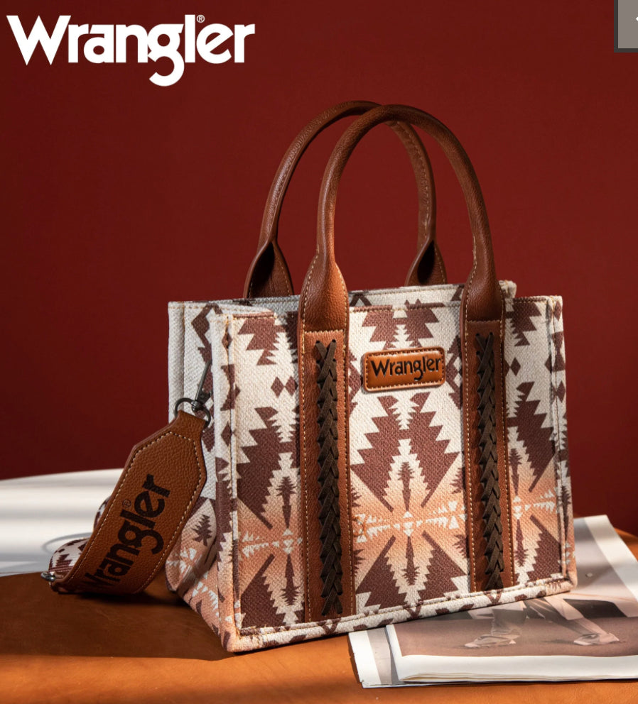 Wrangler Southwestern Print Small Canvas Tote/Crossbody~LIGHT Coffee ombré