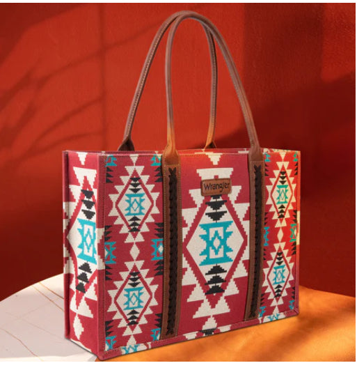 WRANGLER SOUTHWESTERN Wide Tote ~ BURGUNDY